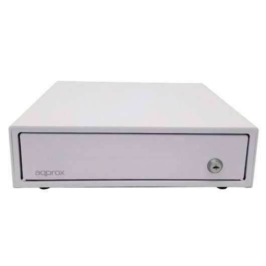 Approx APPCASH33 es un cajón portamonedas compacto y eléctrico, fabricado con material muy resistente al impacto. Dispone de compartimento para billetes con clip de sujeción y cajonera de monedas, ambos totalmente ajustables. Dispone de llave con bloqueo de tres posiciones para una mayor seguridad.