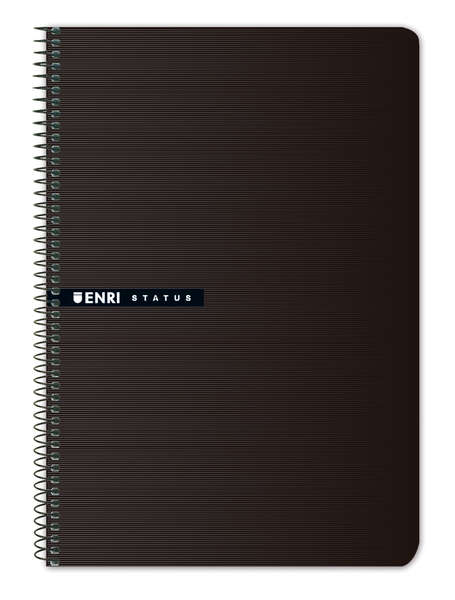 El Enri Status es un cuaderno de tapa dura con espiral de 4×4 pulgadas. Tiene 100 hojas de color negro.