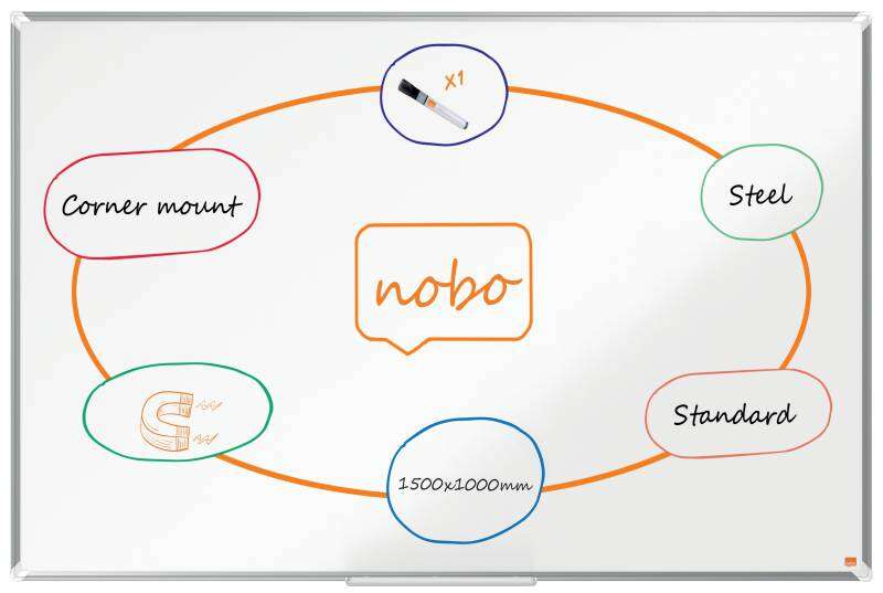 Nobo Premium Plus Pizarra Magnetica de Acero Lacado 1500x1000mm – Montaje en Esquinas – Blanco