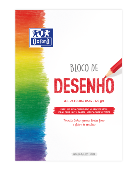 El Oxford Dibujo Escolar Bloc Encolado A3 es un bloc de dibujo con tapa blanda y contratapa rígida. Contiene 24 hojas de papel liso de 120 gramos, ideal para realizar trabajos artísticos en el ámbito escolar. Su tamaño A3 permite trabajar con mayor comodidad y amplitud en cada dibujo.