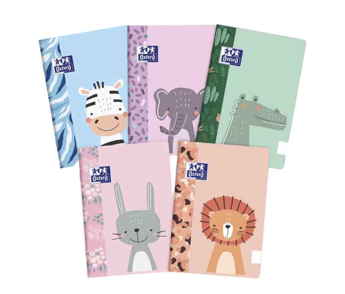 La Oxford Kids Libreta Grapada A5+ es ideal para niños, con un tamaño A5+ y una tapa blanda con tacto suave. Contiene 48 hojas y viene en un surtido de 5 diseños de Animal Besties. Perfecta para que los niños puedan llevarla a todas partes y tomar notas o dibujar en ella.