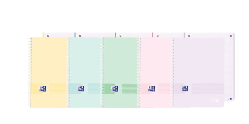 La libreta Oxford Live&Go Europeanbook 1 cuenta con una tapa de plástico en tamaño A4+ y un diseño de cuadrícula de 5×5. Contiene 80 hojas de papel de alta calidad en colores surtidos pastel. Además, incluye la tecnología Scribzee para digitalizar y organizar fácilmente tus notas.
