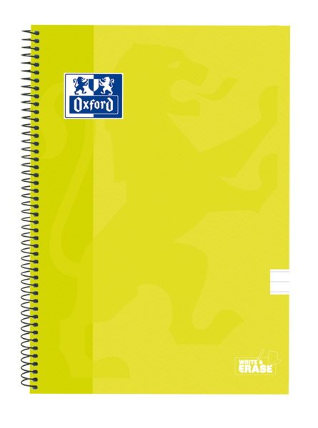 El cuaderno Oxford School Classic es de tamaño folio y cuenta con tapa extradura, lo que lo hace resistente y duradero. Tiene un diseño de espiral que facilita la escritura y permite una apertura completa del cuaderno. Cada página tiene una sola línea con margen, ideal para escribir de forma ordenada y clara. Además, cuenta con la tecnología Write&Erase, que permite borrar y reescribir sin dejar rastros. Tiene 80 hojas de color lima, lo que lo hace llamativo y fácil de identificar.