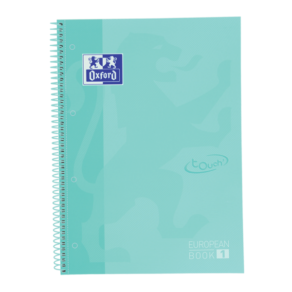 El Oxford School Touch Europeanbook 1 A4+ es un cuaderno con tapa extradura de diseño Ice Mint Pastel. Tiene 80 hojas cuadriculadas de 5×5 y es compatible con Scribzee.