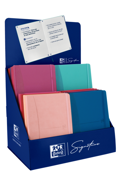 El Oxford Signature Expositor de Sobremesa Surtido A5 es un elegante accesorio de escritorio que incluye hojas lisas y con puntos, ideal para tomar notas y hacer bocetos. Su diseño elegante lo convierte en un complemento perfecto para cualquier espacio de trabajo.