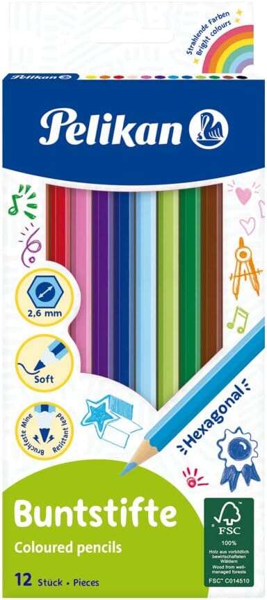 Lápices de colores hexagonales Caja de 12 colores Mina antirotura FSC