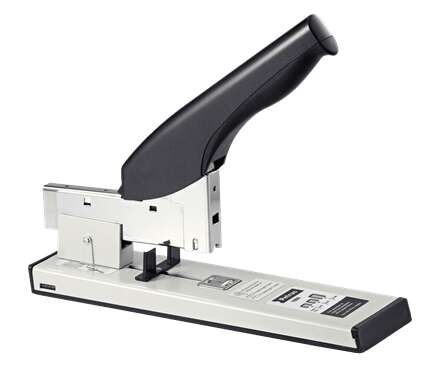 Grapadora de grapado plano para gruesos para tareas profesionales. Con un práctico indicador de recarga. Ideal para servicios postales y oficinas.