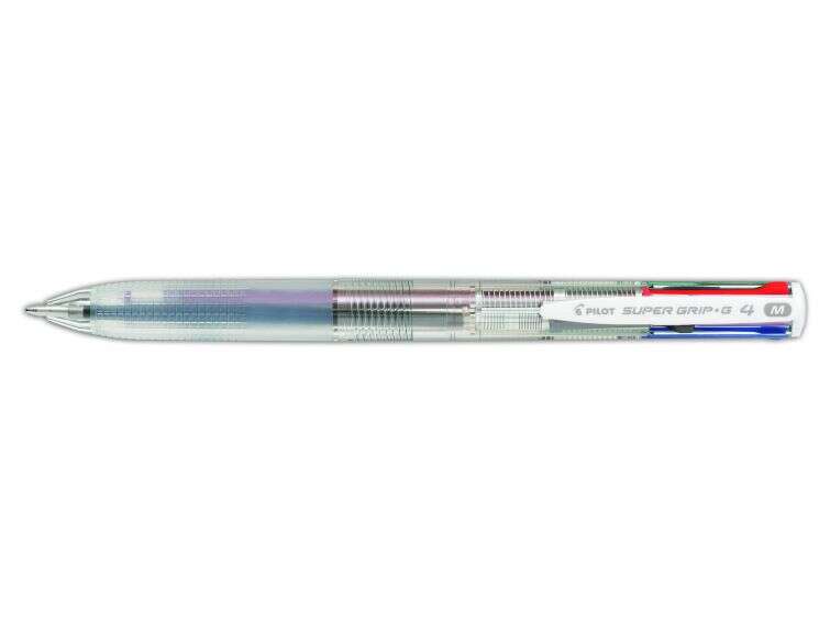 Pilot Boligrafo de Bola Retractil Super Grip G4 – 4 Colores – Punta 1.0mm – Trazo 0.27mm – Cuerpo Transparente